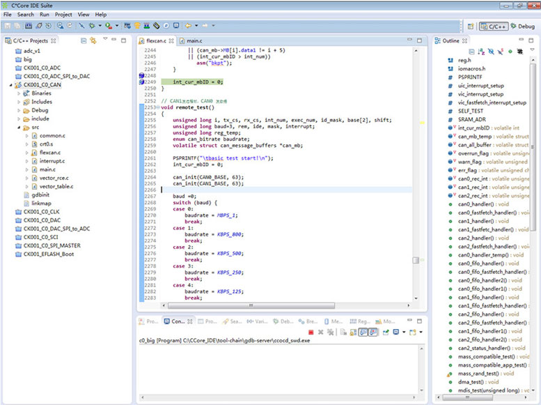 基于Eclipse視圖界面,配合GCC for MCore編譯工具鏈和GDB調(diào)試工具的集成開發(fā)環(huán)境,適用于以C0為CPU核心的所有芯片。